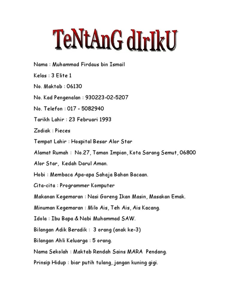 Berikut ini adalah contoh biodata kreatif dan dapat anda kembangkan sendiri sesuai dengan kebutuhan. Powerpoint biodata diri aesthetic | perkenalan diri | profil diri. Ada 4 digit angka (contoh : Menarik contoh biodata diri yang kreatif Penasaran kan bagaimana contoh biodata diri yang baik? Tahun 2015 = pemenang ii lomba program kreativitas mahasiswa (pkm) tingkat . Pasalnya biodata diri digunakan untuk mendaftar beasiswa maupun melamar pekerjaan. "customer service specialist dengan pengalaman kerja lebih dari 2 tahun.